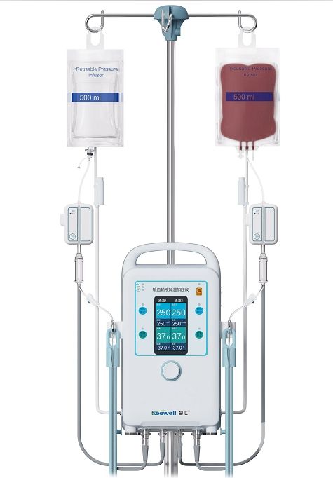 輸血輸液加溫加壓儀,主要由主機、加壓袋、加熱管、輸液監控器、電源線組成。