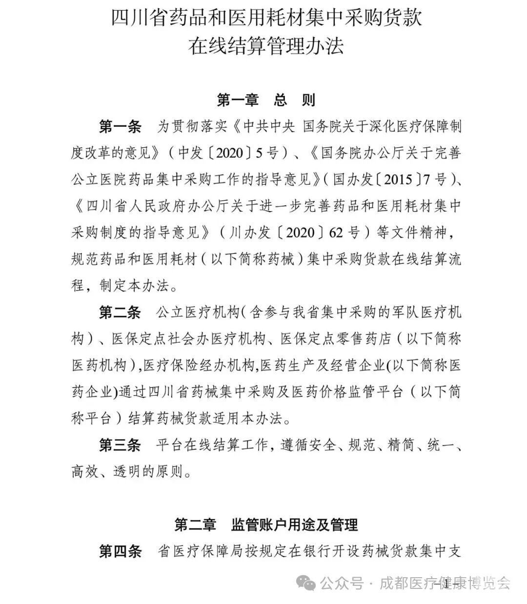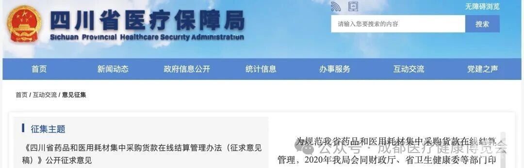 近日,四川醫(yī)保局發(fā)布《四川省藥品和醫(yī)用耗材集中采購(gòu)貨款在線結(jié)算管理辦法(征求意見稿)》(簡(jiǎn)稱《意見稿》,完整見文末)。
