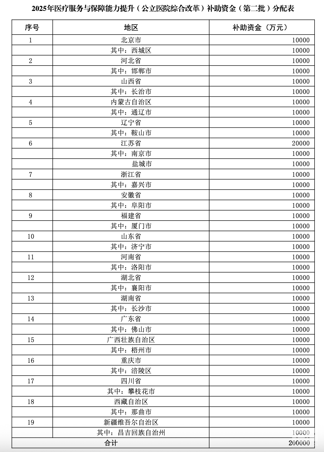 今年8月,“財政部、國家衛生健康委關于下達2025年醫療服務與保障能力提升(公立醫院綜合改革)補助資金(第二批)預算的通知”發布。根據名單,財政對示范項目補助資金每個1億元,共20億中央財政預算下達。
