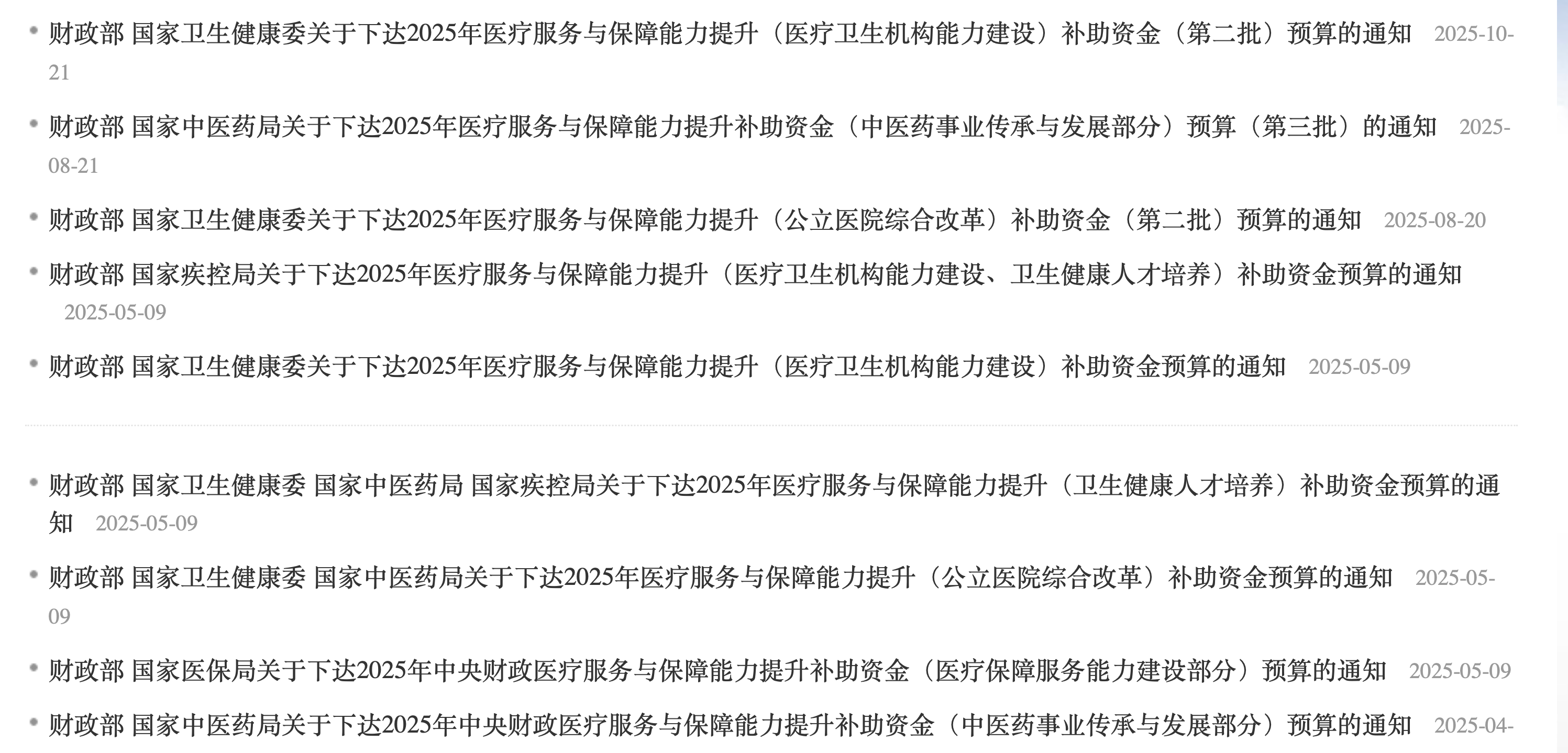 10月21日,財政部發布“財政部、國家衛生健康委關于下達2025年醫療服務與保障能力提升(醫療衛生機構能力建設)補助資金(第二批)預算的通知”。